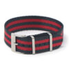 Premium quality bond single-pass seat belt watch bands made from a tightly woven nylon fabric with a silky finish. Extremely durable and comfortable to wear. Finished with laser sealed holes and heavy duty, brushed stainless steel silver buckle and hardware.