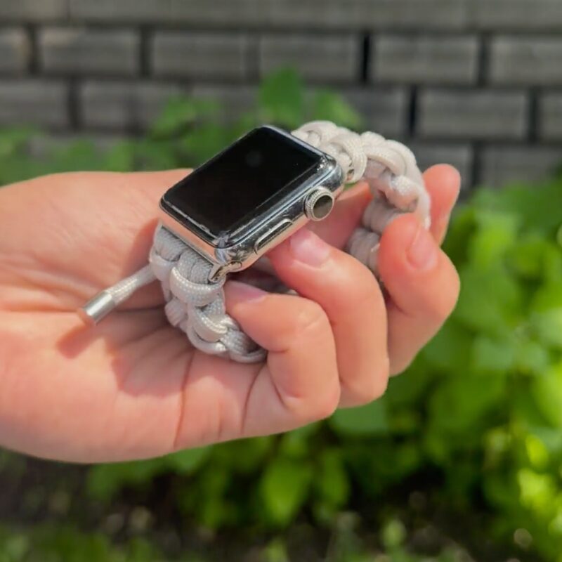 StrapsCo nylon woven paracord replacement watch strap for Apple Watch is an excellent way to change up the look of your device. Embedded within the braids are stainless steel nuts which add an industrious aspect to this strap.