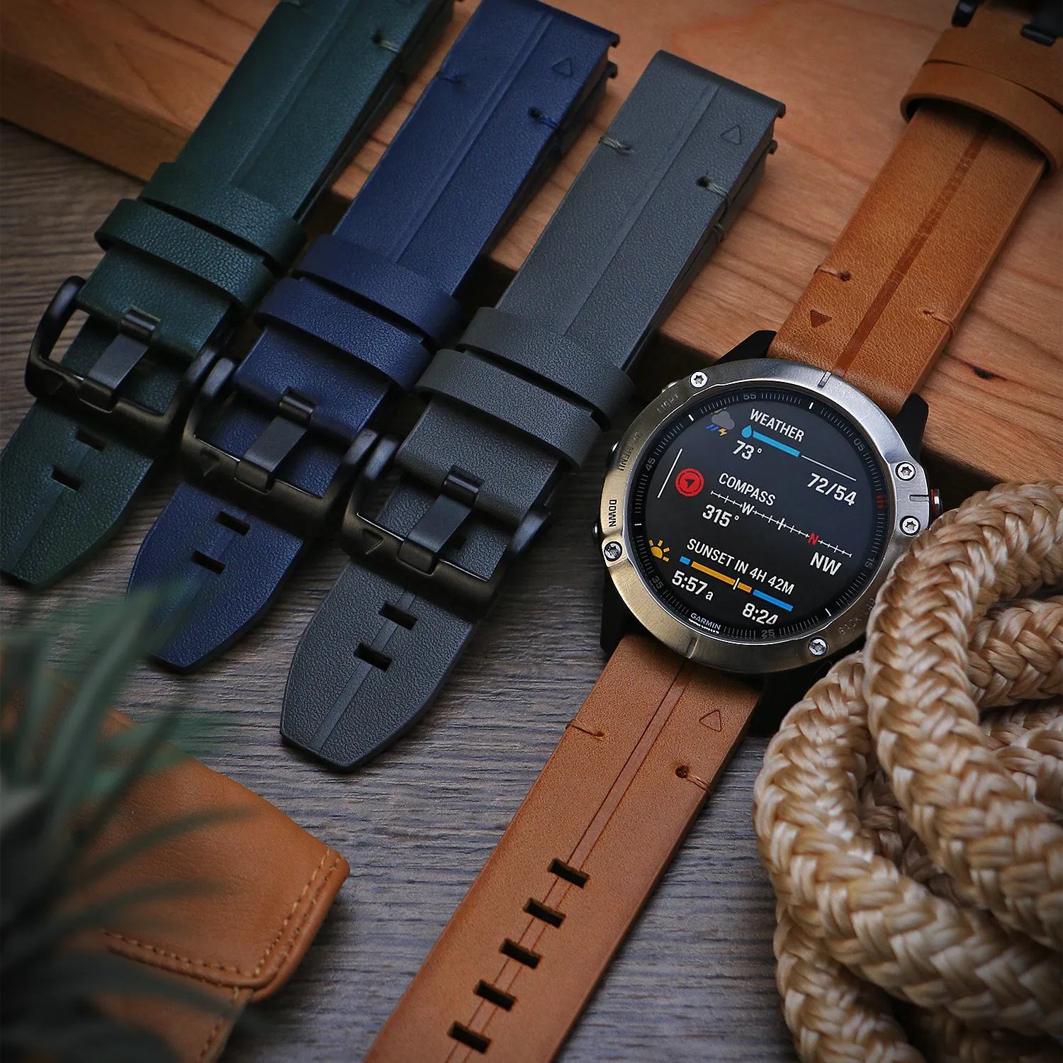 StrapsCo’s Italian Leather Strap is the high-quality strap of your dreams. Finished with our ShieldTek® Scratch Proof Buckle, this robust strap is built to last while looking great on your wrist. Similar to QuickFit 22, this band snaps on and off your Garmin Forerunner 945 with ease.