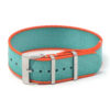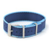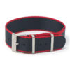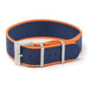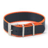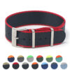 Premium quality stripe edge single-pass seat belt watch bands made from a tightly woven nylon fabric with a silky finish. Extremely durable and comfortable to wear. Finished with laser sealed holes and heavy duty, brushed stainless steel silver buckle and hardware.