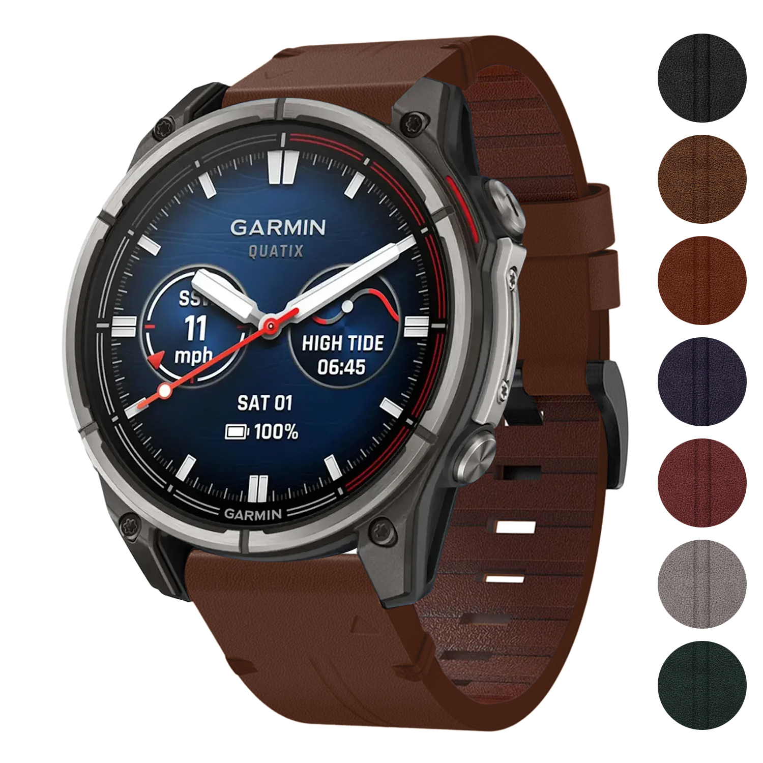 Made from only the best materials, StrapsCo’s Vintage Italian Leather Strap is a high-quality take on a classic. Durable, robust, and finished with our ShieldTek® Scratch Proof Buckle, this strap is built to last. Similar to QuickFit 22, this band snaps on and off your Garmin Quatix 7 with ease.