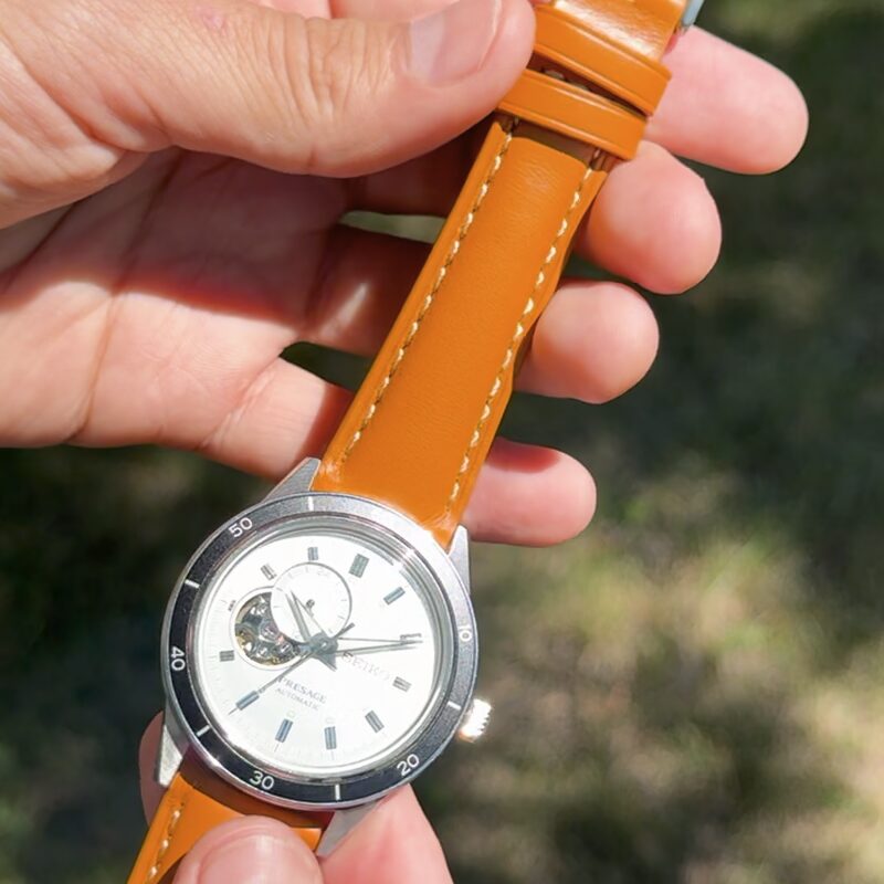 Great strap. Feels well made and durable. Make it complete with a deployment clasp. This will save the strap from creases and eventual splitting. Look for the single fold butterfly clasp on Strapsco. At first, it’s a little stiff and straight. Before putting it on the watch, preform the pin end, then put it on. This will help breaking it in.
